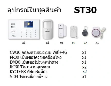 ST30 ชุดสัญญาณกันขโมยบ้านไร้สายและบ้านอัจฉริยะ แจ้งเตือนผ่านการโทร/แอพมือถือ/SMS ชุดเริ่มต้น