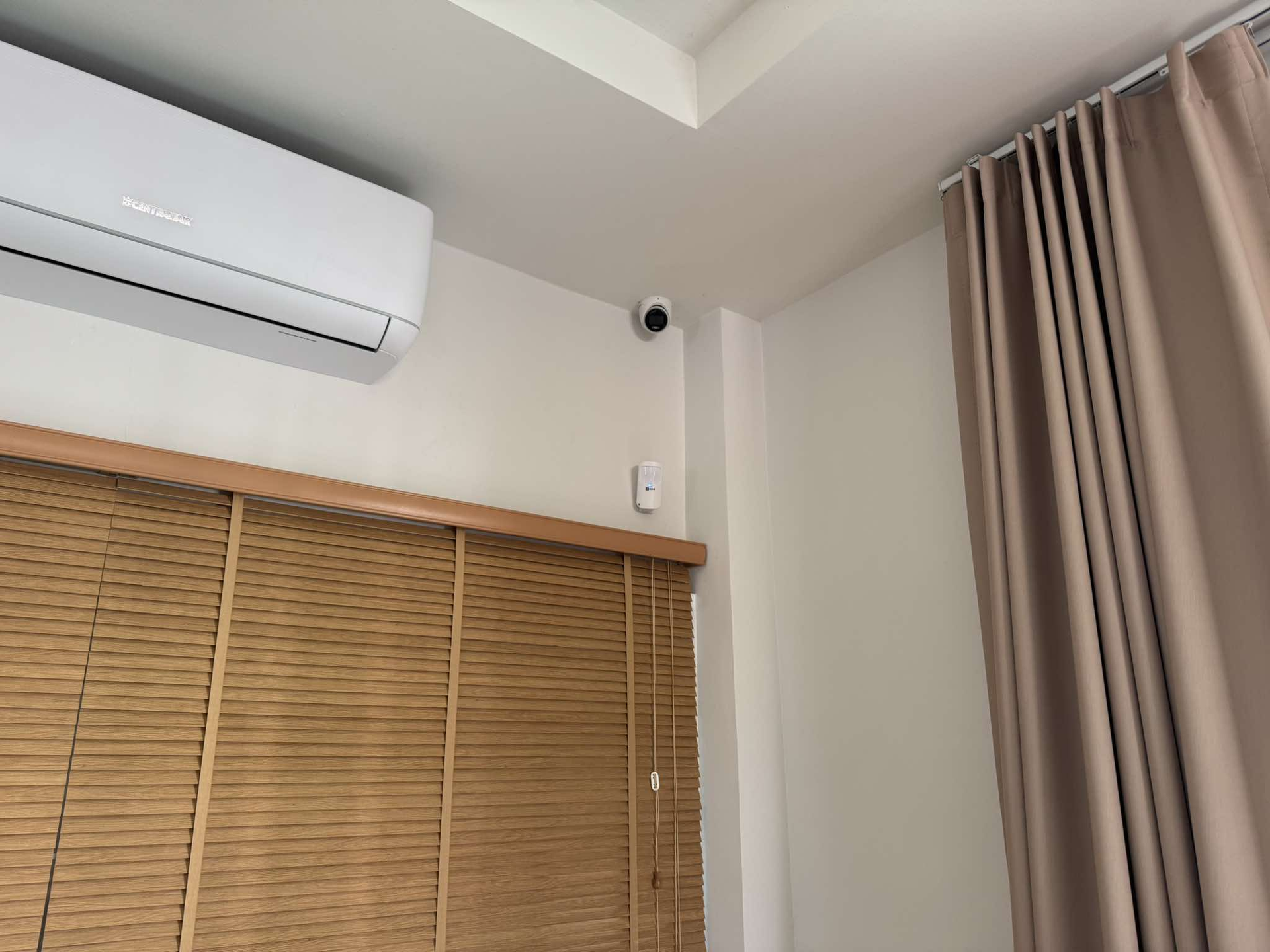 งานติดตั้งระบบรักษาความปลอดภัย ประกอบด้วยเซ็นเซอร์ตรวจจับความเคลื่อนไหว (PIR Sensor) และเซ็นเซอร์ประตูหน้าต่าง เพื่อเพิ่มความปลอดภัยรอบบ้าน