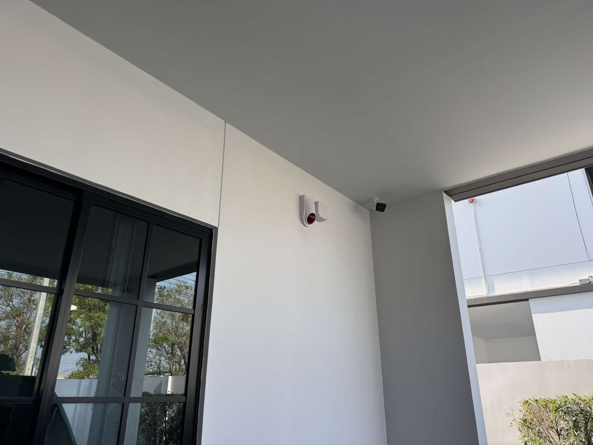 งานติดตั้งชุดอุปกรณ์รักษาความปลอดภัยภายในบ้าน ประกอบด้วยเซ็นเซอร์ตรวจจับความเคลื่อนไหว เซ็นเซอร์ประตูหน้าต่าง และไซเรนส่งสัญญาณเตือนภัย เพื่อเพิ่มระดับความปลอดภัยให้บ้านอัจฉริยะ
