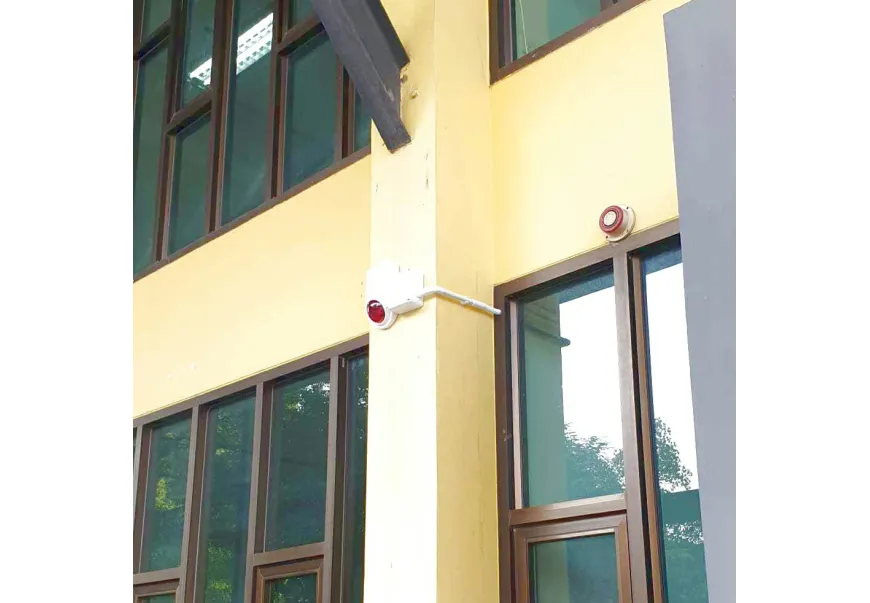 ไซเรนไร้สายและกล่องควบคุม SI08 ติดตั้งภายนอก ดัง 120dB สีขาวมินิมอล สวยงามเข้ากับผนังปูนทาสี ไซ..