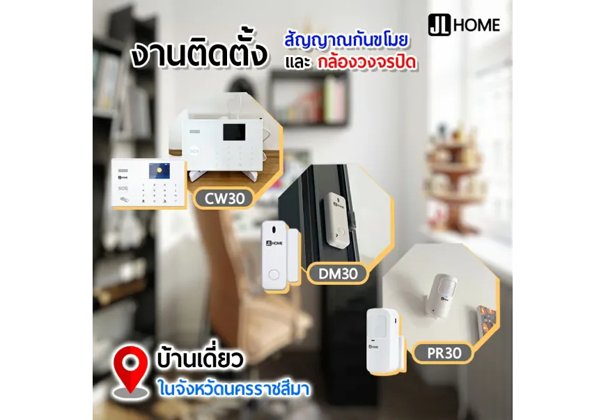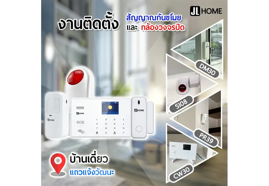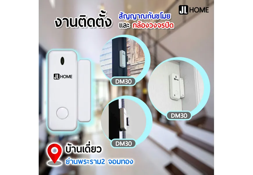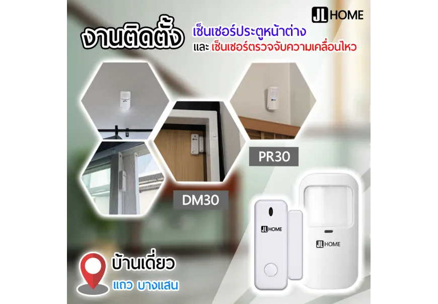 งานติดตั้งชุดอุปกรณ์รักษาความปลอดภัยภายในบ้าน ประกอบด้วยเซ็นเซอร์ตรวจจับความเคลื่อนไหว เซ็..