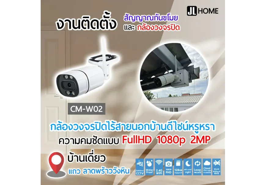 CM-W02 กล้องวงจรปิดไร้สายภายนอก ดีไซน์เรียบหรู ความคมชัดระดับ Full HD 1080p 2MP มาพร้อมฟัง..