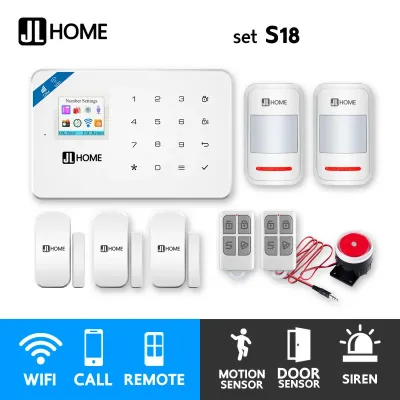 MS18 ชุดสัญญาณกันขโมยบ้านไร้สาย แจ้งเตือนผ่านแอพ/โทร/SMS ชุดกลาง พร้อมเซ็นเซอร์ตรวจจับควัน