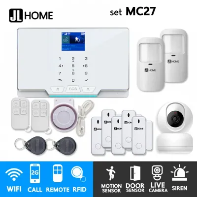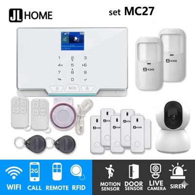 MO27 ชุดสัญญาณกันขโมยบ้านไร้สายและบ้านอัจฉริยะ แจ้งเตือนผ่านการโทร2G/แอพมือถือWifi/SMS ชุดกลางพร้อมวงจรปิดนอกบ้าน