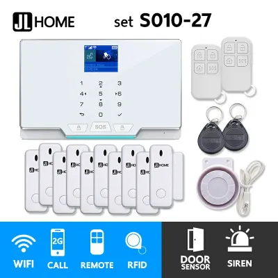 S010-27 ชุดสัญญาณกันขโมยบ้านไร้สายและบ้านอัจฉริยะ แจ้งเตือนผ่านการโทร2G/แอพมือถือWifi/SMS ประตู10