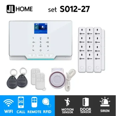 S012-27 ชุดสัญญาณกันขโมยบ้านไร้สายและบ้านอัจฉริยะ แจ้งเตือนผ่านการโทร2G/แอพมือถือWifi/SMS ประตู12