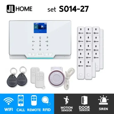 S214-27 ชุดสัญญาณกันขโมยบ้านไร้สายและบ้านอัจฉริยะ แจ้งเตือนผ่านการโทร2G/แอพมือถือWifi/SMS ความเคลื่อนไหว2 ประตู14