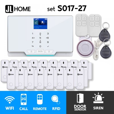 S017-27 ชุดสัญญาณกันขโมยบ้านไร้สายและบ้านอัจฉริยะ แจ้งเตือนผ่านการโทร2G/แอพมือถือWifi/SMS ประตู17