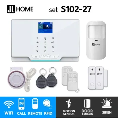 S102-27 ชุดสัญญาณกันขโมยบ้านไร้สายและบ้านอัจฉริยะ แจ้งเตือนผ่านการโทร2G/แอพมือถือWifi/SMS ความเคลื่อนไหว1 ประตู2