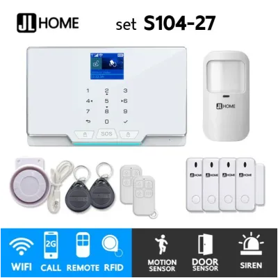 S104-27 ชุดสัญญาณกันขโมยบ้านไร้สายและบ้านอัจฉริยะ แจ้งเตือนผ่านการโทร2G/แอพมือถือWifi/SMS ความเคลื่อนไหว1 ประตู4