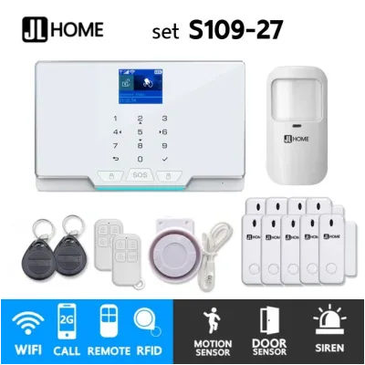 S109-27 ชุดสัญญาณกันขโมยบ้านไร้สายและบ้านอัจฉริยะ แจ้งเตือนผ่านการโทร2G/แอพมือถือWifi/SMS ความเคลื่อนไหว1 ประตู9