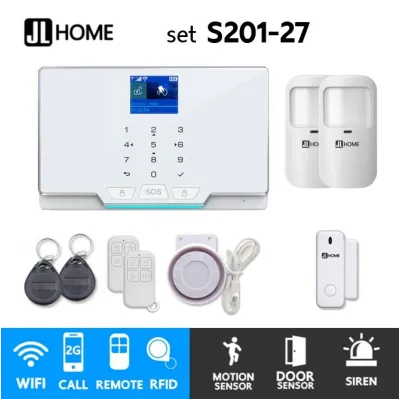 S201-27 ชุดสัญญาณกันขโมยบ้านไร้สายและบ้านอัจฉริยะ แจ้งเตือนผ่านการโทร2G/แอพมือถือWifi/SMS ความเคลื่อนไหว2 ประตู1
