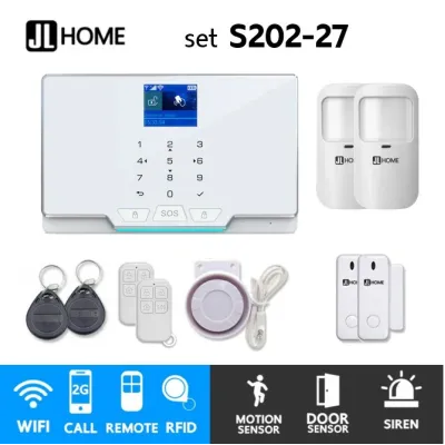 S002-27 ชุดสัญญาณกันขโมยบ้านไร้สายและบ้านอัจฉริยะ แจ้งเตือนผ่านการโทร2G/แอพมือถือWifi/SMS ประตู2