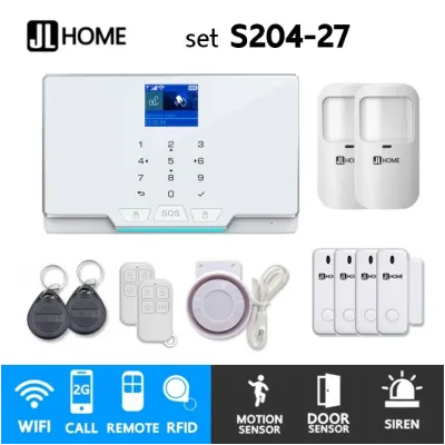 S204-27 ชุดสัญญาณกันขโมยบ้านไร้สายและบ้านอัจฉริยะ แจ้งเตือนผ่านการโทร2G/แอพมือถือWifi/SMS ความเคลื่อนไหว2 ประตู4