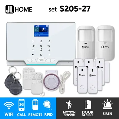 S205-27 ชุดสัญญาณกันขโมยบ้านไร้สายและบ้านอัจฉริยะ แจ้งเตือนผ่านการโทร2G/แอพมือถือWifi/SMS ความเคลื่อนไหว2 ประตู5