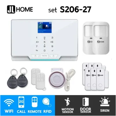 S206-27 ชุดสัญญาณกันขโมยบ้านไร้สายและบ้านอัจฉริยะ แจ้งเตือนผ่านการโทร2G/แอพมือถือWifi/SMS ความเคลื่อนไหว2 ประตู6