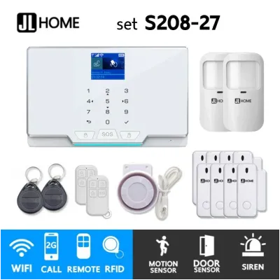 S208-27 ชุดสัญญาณกันขโมยบ้านไร้สายและบ้านอัจฉริยะ แจ้งเตือนผ่านการโทร2G/แอพมือถือWifi/SMS ความเคลื่อนไหว2 ประตู8
