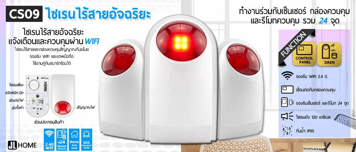 CS09 ไซเรนไร้สายและกล่องควบคุม สัญญาณกันขโมย WIFI 24เซ็นเซอร์และรีโมท