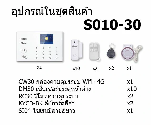 S010-30 ชุดสัญญาณกันขโมยบ้านไร้สายและบ้านอัจฉริยะ แจ้งเตือนผ่านการโทร3G-4G/แอพมือถือWifi/SMS ประตู10