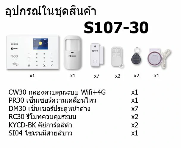 S107-30 ชุดสัญญาณกันขโมยบ้านไร้สายและบ้านอัจฉริยะ แจ้งเตือนผ่านการโทร3G-4G/แอพมือถือWifi/SMS ความเคลื่อนไหว1 ประตู7