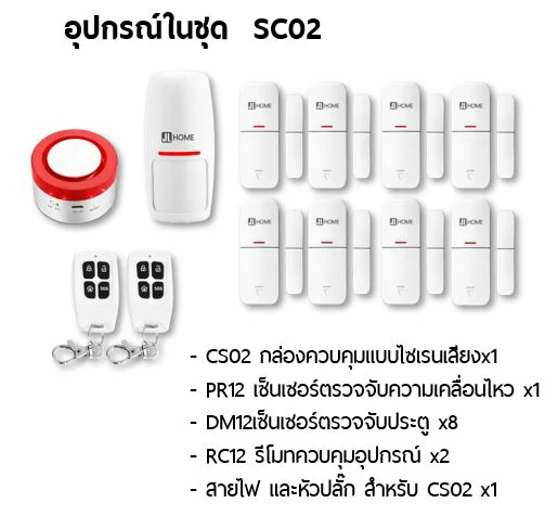 S1802 ชุดสัญญาณกันขโมยบ้านไร้สาย แบบไซเรนไร้สายอัจฉริยะ WIFI เซ็นเซอร์ประตู8จุด