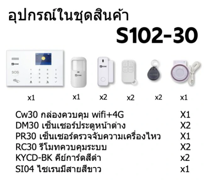 S102-30 ชุดสัญญาณกันขโมยบ้านไร้สายและบ้านอัจฉริยะ แจ้งเตือนผ่านการโทร3G-4G/แอพมือถือWifi/SMS ความเคลื่อนไหว1 ประตู 2