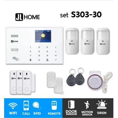S303-30 ชุดสัญญาณกันขโมยบ้านไร้สายและบ้านอัจฉริยะ แจ้งเตือนผ่านการโทร3G-4G/แอพมือถือWifi/SMS ความเคลื่อนไหว3 ประตู3