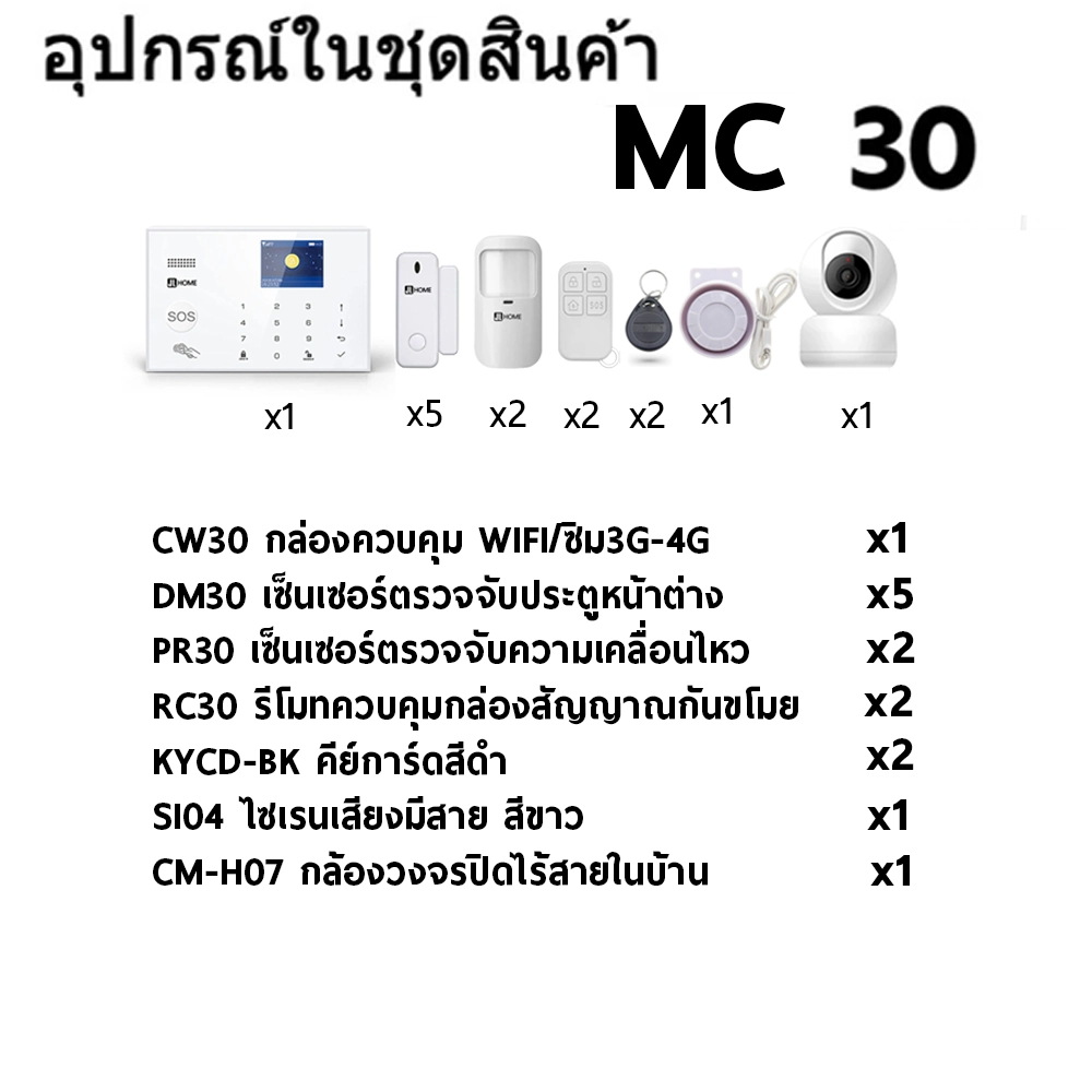 MC30 ชุดสัญญาณกันขโมยบ้านไร้สายและบ้านอัจฉริยะ แจ้งเตือนผ่านการโทร3G-4G/แอพมือถือWifi/SMS ชุดกลางพร้อมวงจรปิดในบ้าน