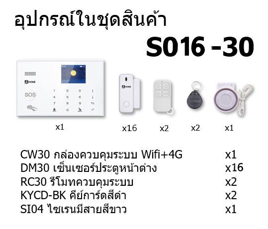 S016-30 ชุดสัญญาณกันขโมยบ้านไร้สายและบ้านอัจฉริยะ แจ้งเตือนผ่านการโทร3G-4G/แอพมือถือWifi/SMS ประตู15