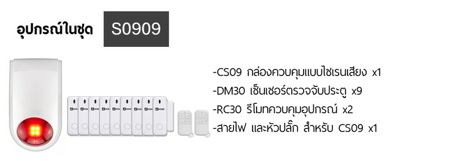 S0909 ชุดกล่องควบคุมไซเรน สัญญาณกันโมยบ้านไร้สาย ชุดเซ็นเซอร์ประตูx9 แจ้งเตือนผ่านแอพ ไม่ต้องมีกล่องควบคุมในบ้าน