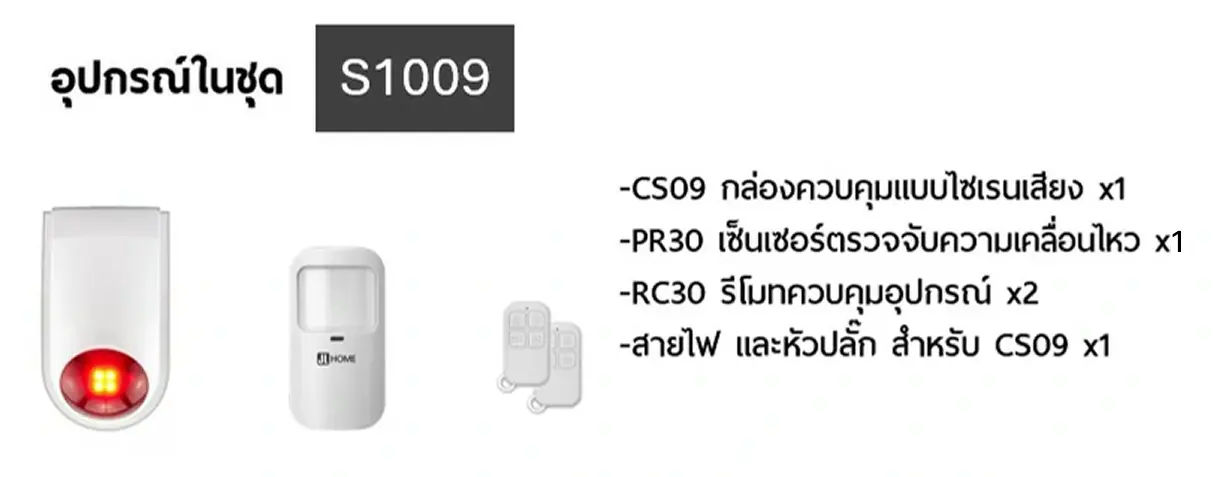 S1009 ชุดกล่องควบคุมไซเรน สัญญาณกันโมยบ้านไร้สาย ชุดเซ็นเซอร์ประตูเคลื่อนไหวx1 แจ้งเตือนผ่านแอพ ไม่ต้องมีกล่องควบคุมในบ้าน