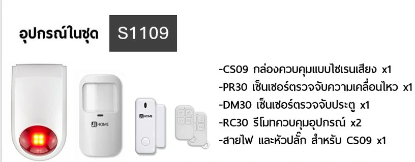 S1109 ชุดกล่องควบคุมไซเรน สัญญาณกันโมยบ้านไร้สาย ชุดเซ็นเซอร์ประตูเคลื่อนไหวx1 เซ็นเซอร์ประตูx1 แจ้งเตือนผ่านแอพ ไม่ต้องมีกล่องควบคุมในบ้าน
