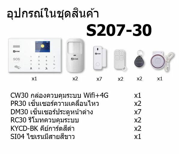 S207-30 ชุดสัญญาณกันขโมยบ้านไร้สายและบ้านอัจฉริยะ แจ้งเตือนผ่านการโทร3G-4G/แอพมือถือWifi/SMS ความเคลื่อนไหว2 ประตู7