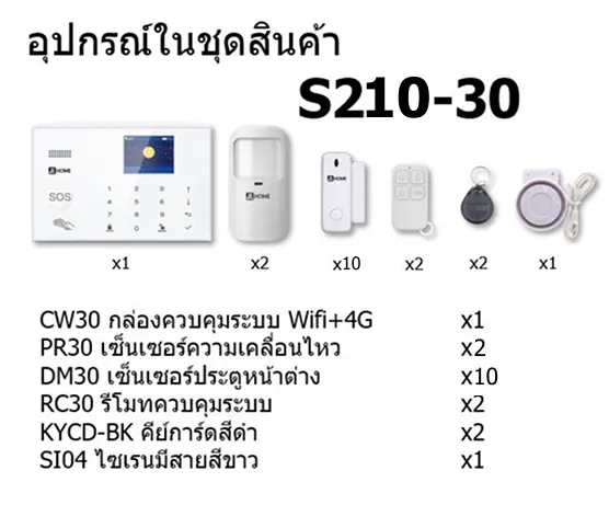 S210-30 ชุดสัญญาณกันขโมยบ้านไร้สายและบ้านอัจฉริยะ แจ้งเตือนผ่านการโทร3G-4G/แอพมือถือWifi/SMS ความเคลื่อนไหว2 ประตู10