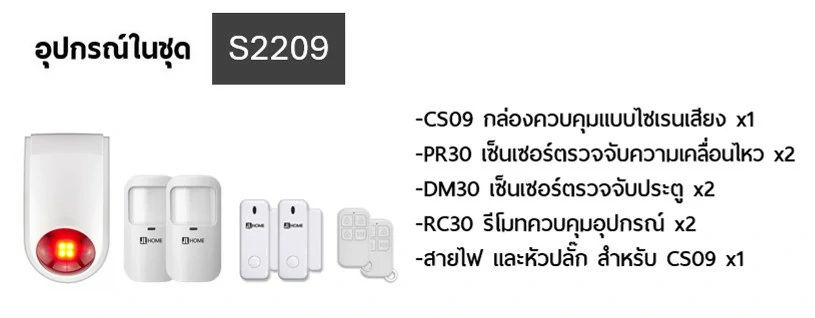 S2209 ชุดกล่องควบคุมไซเรน สัญญาณกันโมยบ้านไร้สาย ชุดเซ็นเซอร์ประตูเคลื่อนไหวx2 เซ็นเซอร์ประตูx2 แจ้งเตือนผ่านแอพ ไม่ต้องมีกล่องควบคุมในบ้าน