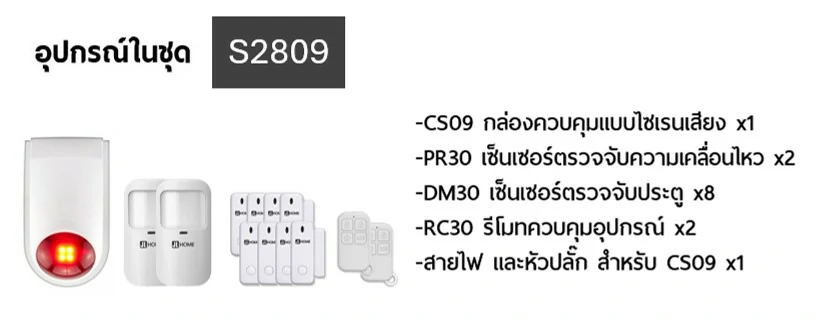 S2809 ชุดกล่องควบคุมไซเรน สัญญาณกันโมยบ้านไร้สาย ชุดเซ็นเซอร์ประตูเคลื่อนไหวx2 เซ็นเซอร์ประตูx8 แจ้งเตือนผ่านแอพ ไม่ต้องมีกล่องควบคุมในบ้าน