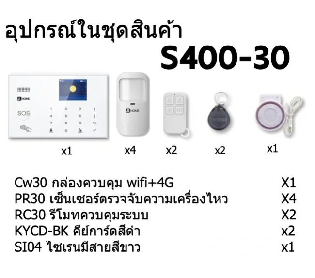 S400-30 ชุดสัญญาณกันขโมยบ้านไร้สายและบ้านอัจฉริยะ แจ้งเตือนผ่านการโทร3G-4G/แอพมือถือWifi/SMS ความเคลื่อนไหว4