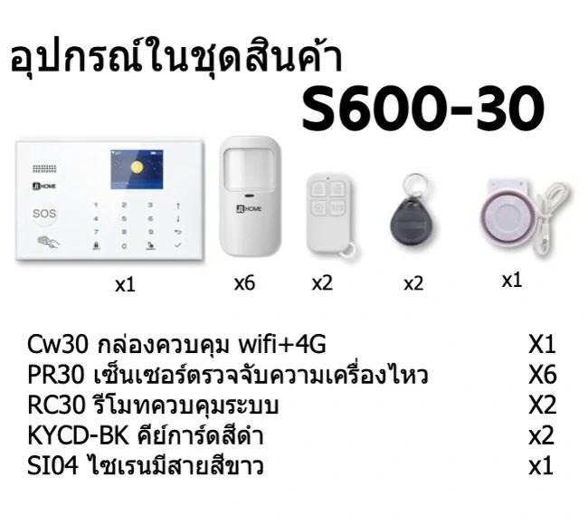 S600-30 ชุดสัญญาณกันขโมยบ้านไร้สายและบ้านอัจฉริยะ แจ้งเตือนผ่านการโทร3G-4G/แอพมือถือWifi/SMS ความเคลื่อนไหว6