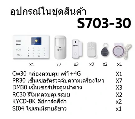 S703-30 ชุดสัญญาณกันขโมยบ้านไร้สายและบ้านอัจฉริยะ แจ้งเตือนผ่านการโทร3G-4G/แอพมือถือWifi/SMS ความเคลื่อนไหว7 ประตู3