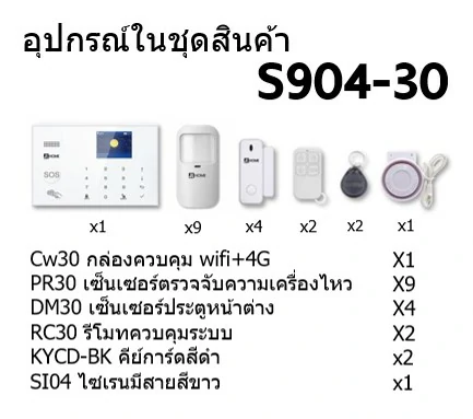 S904-30 ชุดสัญญาณกันขโมยบ้านไร้สายและบ้านอัจฉริยะ แจ้งเตือนผ่านการโทร3G-4G/แอพมือถือWifi/SMS ความเคลื่อนไหว9 ประตู4