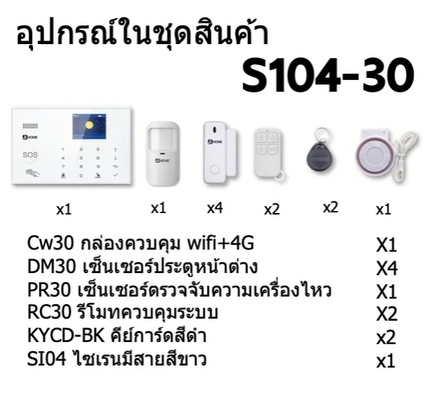 S104-30 ชุดสัญญาณกันขโมยบ้านไร้สายและบ้านอัจฉริยะ แจ้งเตือนผ่านการโทร3G-4G/แอพมือถือWifi/SMS ความเคลื่อนไหว1 ประตู 4