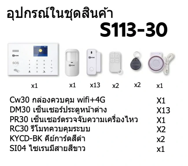 S113-30 ชุดสัญญาณกันขโมยบ้านไร้สายและบ้านอัจฉริยะ แจ้งเตือนผ่านการโทร3G-4G/แอพมือถือWifi/SMS ความเคลื่อนไหว1 ประตู 13