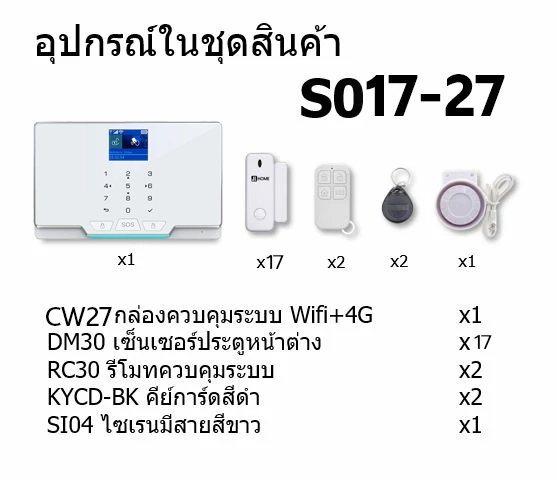 S017-27 ชุดสัญญาณกันขโมยบ้านไร้สายและบ้านอัจฉริยะ แจ้งเตือนผ่านการโทร2G/แอพมือถือWifi/SMS ประตู17
