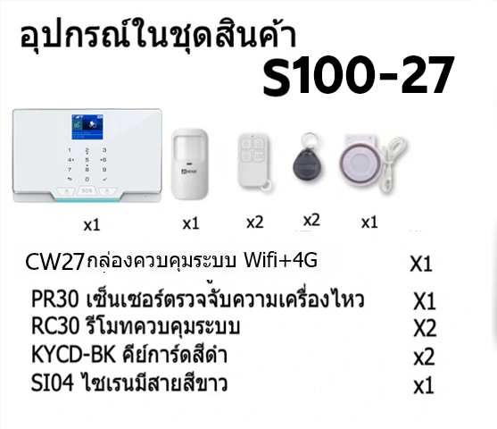 S100-27 ชุดสัญญาณกันขโมยบ้านไร้สายและบ้านอัจฉริยะ แจ้งเตือนผ่านการโทร2G/แอพมือถือWifi/SMS ความเคลื่อนไหว1