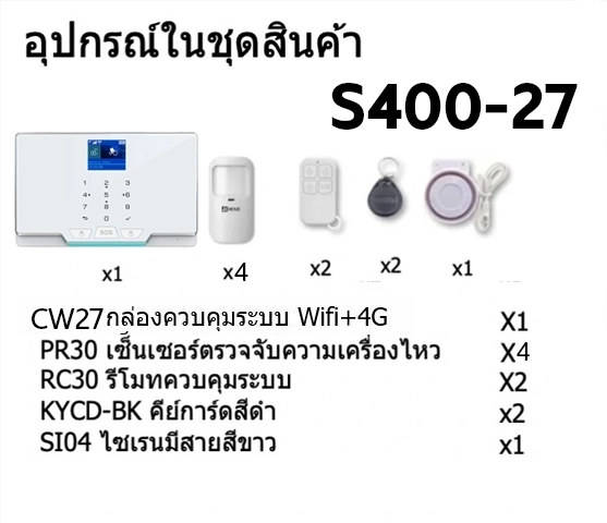 S400-27 ชุดสัญญาณกันขโมยบ้านไร้สายและบ้านอัจฉริยะ แจ้งเตือนผ่านการโทร2G/แอพมือถือWifi/SMS ความเคลื่อนไหว4