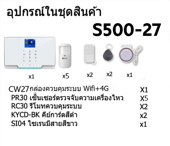 S500-27 ชุดสัญญาณกันขโมยบ้านไร้สายและบ้านอัจฉริยะ แจ้งเตือนผ่านการโทร2G/แอพมือถือWifi/SMS ความเคลื่อนไหว5
