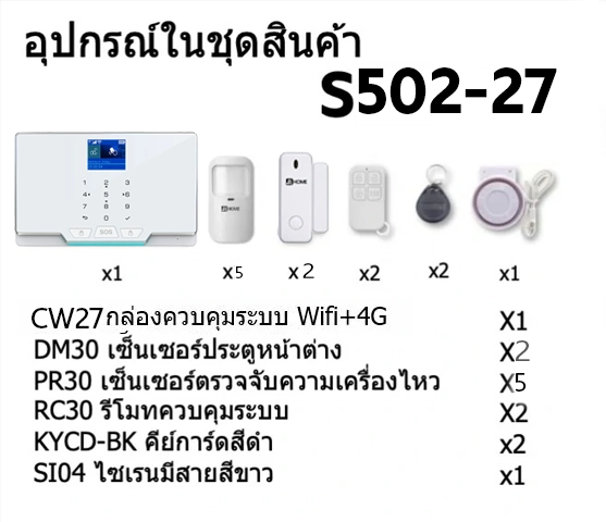 S502-27 ชุดสัญญาณกันขโมยบ้านไร้สายและบ้านอัจฉริยะ แจ้งเตือนผ่านการโทร2G/แอพมือถือWifi/SMS ความเคลื่อนไหว5 ประตู2