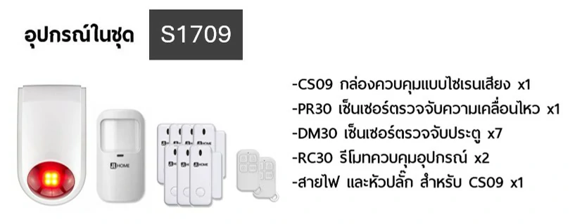 S1709 ชุดกล่องควบคุมไซเรน สัญญาณกันโมยบ้านไร้สาย ชุดเซ็นเซอร์ประตูเคลื่อนไหวx1 เซ็นเซอร์ประตูx7 แจ้งเตือนผ่านแอพ ไม่ต้องมีกล่องควบคุมในบ้าน